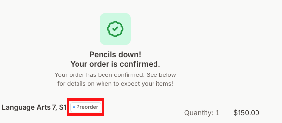 On the checkout screen, you'll see your item marked as preorder. That means that you can't start using your resource just yet – but you'll be able to soon!
