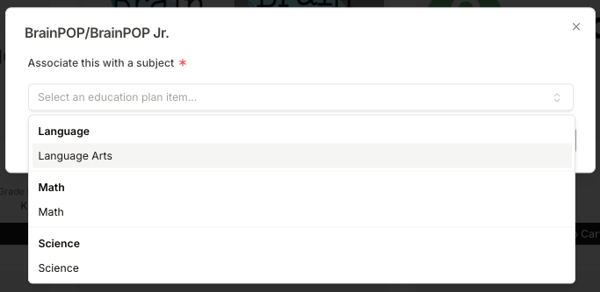 When you add an item to your cart, you'll be asked to connect it to a subject on your student's education plan.