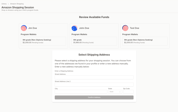 Either way, you’ll be taken to a page that lets you review the available funds for each of your students.