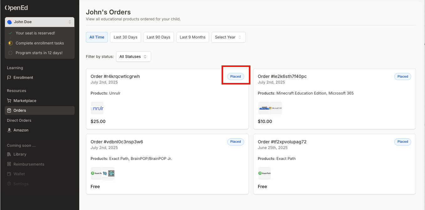 To supplement your student’s education, you can place direct orders for materials through approved vendors like Amazon and Rainbow Resource – straight through the OpenEd platform.