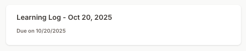 You can see the due date for each learning log through the log’s title. For example, in the screenshot below, the name of the learning log is Learning Log - Oct 20, 2025. This log is due on October 20th.